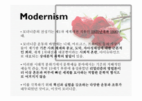 목차 1. Modernism 2. Southern America 3. Text Reading 본문 Modernism 모더니즘의 전성기는 제1차 세계대전 직후인 1920년대와 1930년대. 모더니즘 운동의 바탕에는 니체, 마르크스, 프로이트 등의 사상가들이 제기한 기존 사회 체제와 종교, 도덕, 자아정체성에 대한 근본적인 회의, 세계 1차대전과 대공황이라는 사회적 혼란, 아이슈타인으로 대표되는 상대론적 과학의 발달이 있음. 이러한 시대적 분위기에서 문학예술 분야에서는 기존의 지배적인 예술적 관습, 특히 19세기 후반에 융성하였던 리얼리즘의 방법론이 더 이상 혼돈과 허무에 빠진 세계를 묘사하는 적합한 문학적 형식으로 여겨지지 않음 이를 극복하기 위해 혁신과 실험을 강조하는 다양한 운동과 조류가 대두되었던 것이고, 이것이 모더니즘. < 중략 > Part I It was a big, squarish frame house that had once been white, decorated with cupolas and spires and scrolled balconies in the heavily lightsome style of the seventies, set on what had once been our most select street. But garages and cotton gins had encroached and obliterated even the august names of that neighborhood; only Miss Emily s house was left, lifting its stubborn and coquettish decay above the cotton wagons and the gasoline pumps an eyesore among eyesores. Emily와 그의 가문을 대변하는 집. (이미지즘) 남북전쟁 이후의 쇠락하고 있는 남부의 모습. 과거의 영광을 잃고 퇴색해가는 남부(전통)의 모습에 대한 남부인들의 체념적인 태도 또는 자조적인 태도. 키워드 해설 |