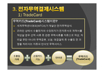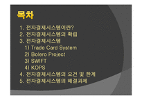 목차 1. 전자결제시스템이란? 2. 전자결제시스템의 확립 3. 전자결제시스템 1) Trade Card System 2) Bolero Project 3) SWIFT 4) KOPS 4. 전자결제시스템의 요건 및 한계 5. 전자결제시스템의 해결과제 본문 * SWIFT의 장단점 1) 장점 - 보안성(security)- SWIFT로부터 수령한 SECURE KEY를 입력해야만 SWIFT Network와 의 접속이 가능하며 거래은행간(correspondant) 교환된 인증키(Authentication key)에 의 거하여 전문내용의 진위여부가 자동으로 확인되므로, 기존의 통신수단에 비해 보안성이 제 고 되었다. - 신속성- 전문(message)발송후 30초 이내에 수신자에게 전문전달이 가능하며, 추후 그 전 달여부의 확인이 가능하다. - 저비용- 텔렉스 및 타결제수단에 비해 통신비용이 저렴하다. - 업무의 표준화- 전문내용이 표준화 되어 있어 기계에 의한 판독이 가능하여 전산에 의한 업무의 자동처리가 가능하며 전문내용 파악이 용이하다. 2) 단점 - 느린속도- SWIFT가 사용하고 있는 X.25는 1980년대 개발된 사실상 통신기술의 첫 표준 으로 패킷교환망을 사용하여 경제적이고 효율적인 망의 구성과 관리가 가능하고,보안의 유 지가 좋아서 금융분야에 많이 쓰였다. 하지만 더 빨리 통신하고자 하는 사용자들의 욕구와 통신선로 및 통신장비기술의 발달은 통신속도를 비약적으로 늘렸다.그러나 X.25방식의 속 도는 한계가 있다.(최대 56Kbps) - 폐쇄적인 통신환경- SWIFT는 폐쇄적인 통신환경을 가지고 있어 통신환경의 개방화에 발 을 맞추지 못한다. 과거에 사용자들은 통신하기 위해 서로 동일한 기기를 가지고 있어야 했으나, 이제는 컴퓨터에서 전화를 걸 수 있을 뿐만 아니라 핸드폰에서 인터넷을 이용할 수 있게 되었다.통신환경이 하드웨어나 소프트웨어에 독립적으로 되어가고 있는 것이다. 그에비해 SWIFT는 동일한 기기와 복잡한 사용방식으로 이용이 제한되는 특성이 있다. 그 리고 기기 가격이 비싸다. - 통신인프라의 통합화에 부적합- 최근에 등장하는 통신장비들은 과거에 비해 다양한 기능 과 우수한 성능을 구비하고 있어 기존에 별개로 존재했던 통신인프라를 하나의 네트워크로 통합화 하는 것을 가능하게 해 준다.그러나 현재 대부분의 금융업무가 이 X.25 엑세스 망 을 쓰고 있기에 인터넷지로,공증인증등 발전하고 잇는 인터넷 소비자들의 네트워크 환경과 의 연동이 불안정하고 비효율적이다.SWIFT 망 역시 이러한 단점을 안고 있다. 참고문헌 김진영, '사이버무역 활성화를 위한 전자무역 결제시스템 도입효과 및 비교분석', 2001 공정열, "전자무역결제시스템의 문제점과 개선방안. 단국대 대학원 2002 김용재 외 2인 공저, '전자(인터넷사이버)무역', 두남, 2001 이남구 외 2인 공저, '디지털 시대 세계무역', 무역경영사, 2001 김영래 외 6인 공저, '전자무역의 이해와 전개', 브레인코리아, 2002 전자무역결제시스템의 기술과 과제, 국제 e-비즈니스 학회 하고 싶은 말 본 자료는 전자결제시스템의 대표적인 종류인 Trade Card System, Bolero Project, SWIFT, KOPS 등에 대해 정리하였으며, 전자결제시스템의 요건 및 한계 그리고 전자결제시스템의 해결과제에 대해 체계적으로 설명한 자료임 키워드 전자결제시스템, Trade Card System, Bolero Project, SWIFT, KOPS, TradeCard, 무역카드, 수출대금 카드결제서비스 |