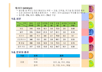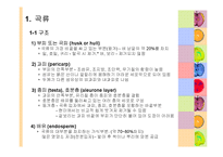 목차 1. 곡류의 구조 및 성분 1) 곡류의 구조 2) 성분 3) 분류와 종류 4) 곡류의 식품학적 의의 2. 전분 1) 전분의 구조 2) 전분의 종류 3) 전분의 호화 4) 전분의 노화 5) 전분의 호정화 3. 쌀(Rice) 1) Rice of Name 2) Rice의 Grouping 3) 벼의 품종군 Grouping 4) 우리나라의 Growing history 5) 벼(나락)와 쌀의 Derivation(語原)품종 6) Rice is General or nutrition character역사 7) 쌀의 분류 및 가공품조리, 밥맛에 영향을 주는 구성요소 8) 쌀의 분류 및 가공품가공품 4. 밀(Wheat) 1) 밀의 종명 및 발상지 2) 밀의 종류 3) 주요성분 4) 밀의 분류 5) 도우(Dough)에 영향을 주는 요인 6) 팽창제(Leavening agent) 7) 반죽의 종류와 구성 5. 두류(legumes) 1) 영양성분에 따른 두류의 구분 2) 두류의 영양성분 3) 콩 조리시 특징 4) 두류 가공식품 본문 1. 곡류 1-1 구조 1) 부피 또는 곡피 (husk or hull) * 곡류의 가장 바깥을 싸고 있는 부분(왕겨) - 벼 낟알의 약 20%를 차지 * 밀, 호밀, 귀리 - 탈곡 시 제거.* 벼, 보리 - 제거되지 않음 2) 과피 (pericarp) * 부피의 안쪽부분 - 조섬유, 조지방, 조단백, 무기질의 함량이 높음 * 섬유는 묽은 산이나 알칼리에 용해하기 어려운 세포막으로 되어 있음 * 두께가 다른 섬유상의 외과피와 내과피로 나뉨 3) 종피 (testa), 호분층 (aleurone layer) * 과피의 안쪽부분, 유리질 층이 종피와 호분층을 결합 * 호분층은 배유를 둘러싸고 있는 여러 층의 세포로 구성 * 등겨층 - 곡류 입자에서 과피, 종피, 호분층을 포함하는 바깥부분 - 현미에서는 비교적 쉽게 벗겨져 제거될 수 있음 - 겉보리는 과피 바깥에 부피가 단단히 붙어 있어 도정이 어려움 4) 배유 (endosperm) * 곡류의 대부분을 차지하는 가식부분(약 70~80%차지)많은 영양소 저장(전분입자) - 발아 후 싹이나 뿌리에 양분 공급 하고 싶은 말 본 자료는 곡류와 밀가루의 조리를 할 때 곡류의 구조와 성분, 전분의 호화 및 노화과정, 쌀과 보리, 콩류의 조리 등에 대해 상세하게 정리하였고, 오랜기간 조리외식분야 프로 전문가가 심여를 기울여 만든 결과 일반인 특강 및 현 대학교 호텔조리외식계열에 사용되는 최적의 전문 자료임 키워드 곡류의 구조 및 성분, 곡류의 분류와 종류, 전분의 구조와 종류, 전분의 호화와 노화 및 호정화, 쌀의 기원, 밀(Wheat), 도우(Dough)에 영향을 주는 요인, 팽창제(Leavening agent), 반죽의 종 |